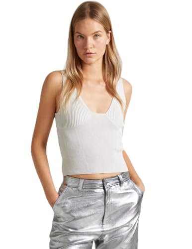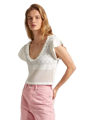 Pepe Jeans dam Goldie Top Stickat, Vit (Mousse Vit), M, Vit (Mousse vit), M