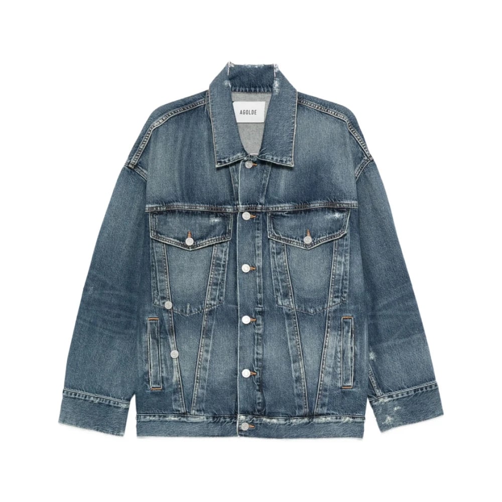 Agolde, Jackor , Dam, S, Bomull, Ljusblå Jeansjacka med Fickor