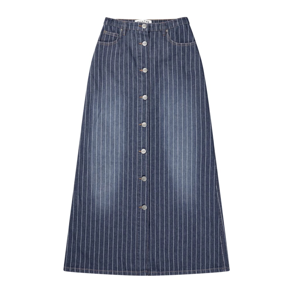 Munthe, Kjolar , Dam, XS, Bomull, Randig Jeanskjol med Knappstängning