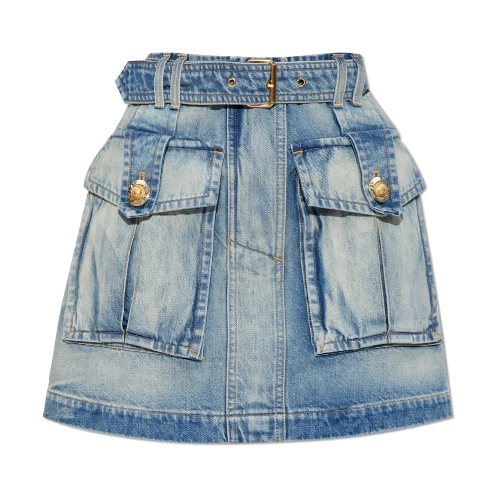 Balmain, Kjolar , Dam, M, Bomull, Jeanskjol med dekorativa knappar