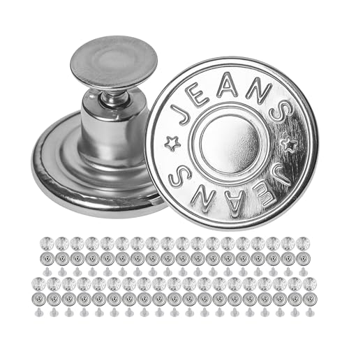 Byxknappar för nitning, 40-pack, set om tre storlekar, jeansknappar i mässing, silverfärgade, jeansknapp med nitar, jeansknapp för att slå in, byxknappar i metall, jeansbyxfäste