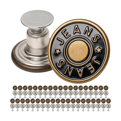 Byxknappar för nitning, 40-pack, set med tre storlekar, jeansknappar i mässing, bronsfärgade, jeansknapp med nitar, jeansknapp för att hamra i, byxknappar i metall, gör jeansbyxor bredare