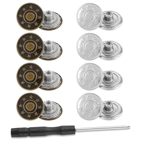 Amabro 8 st jeansknapp med klämma, 20 mm körsbärsknappar, justerbara och återanvändbara, byxknapp för sömlösa jeans, med skruvmejsel för män och kvinnor