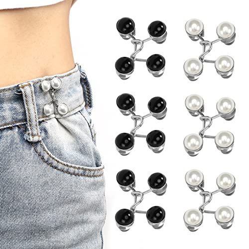 Pearl Jean knappnålar, 6 uppsättningar justerbara nagelfria midjespännen midjeförlängning, sömfri knapp knappstift avtagbara jeansknapp byxor clips för byxor jeans