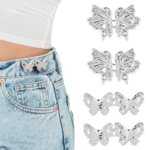 Mabor 4 set midjedragare klämmor byxa midja åtdragare fjäril bling midjeband åtdragare jeansknapp för att göra mindre justeringsklämmor för lösa jeans