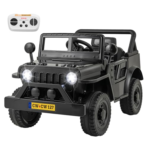 COSTWAY Elbil för barn, 12 V elektrisk barnbil med fjärrkontroll och lampor och musikspelare, 3 växlar elfordon jeep-bil för barn från 3 år (vit)