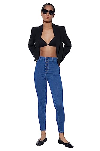 Trendyol Dam basic hög midja skinny fit jegging-jeans, BLÅ, 64 SE