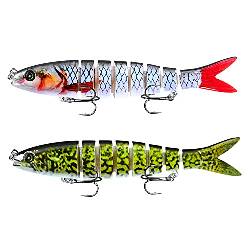 CAM2 drag för konstgjort bete 2 stycken multi-led-liknande wobbler gädda bete swimbait jerkbait abborre fiskeutrustning för fiske efter rovfisk med 2 trekrokar gummifiskar (vit grön)