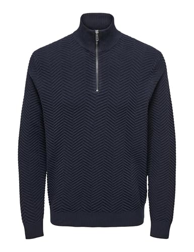 ONLY & SONS Herringbone Half Knit NS Onsmace Reg-Fiskbens-Half-Zip-Jersey, Marinblå Blazer, 3XL Herr, Marinblå kavaj, 3XL