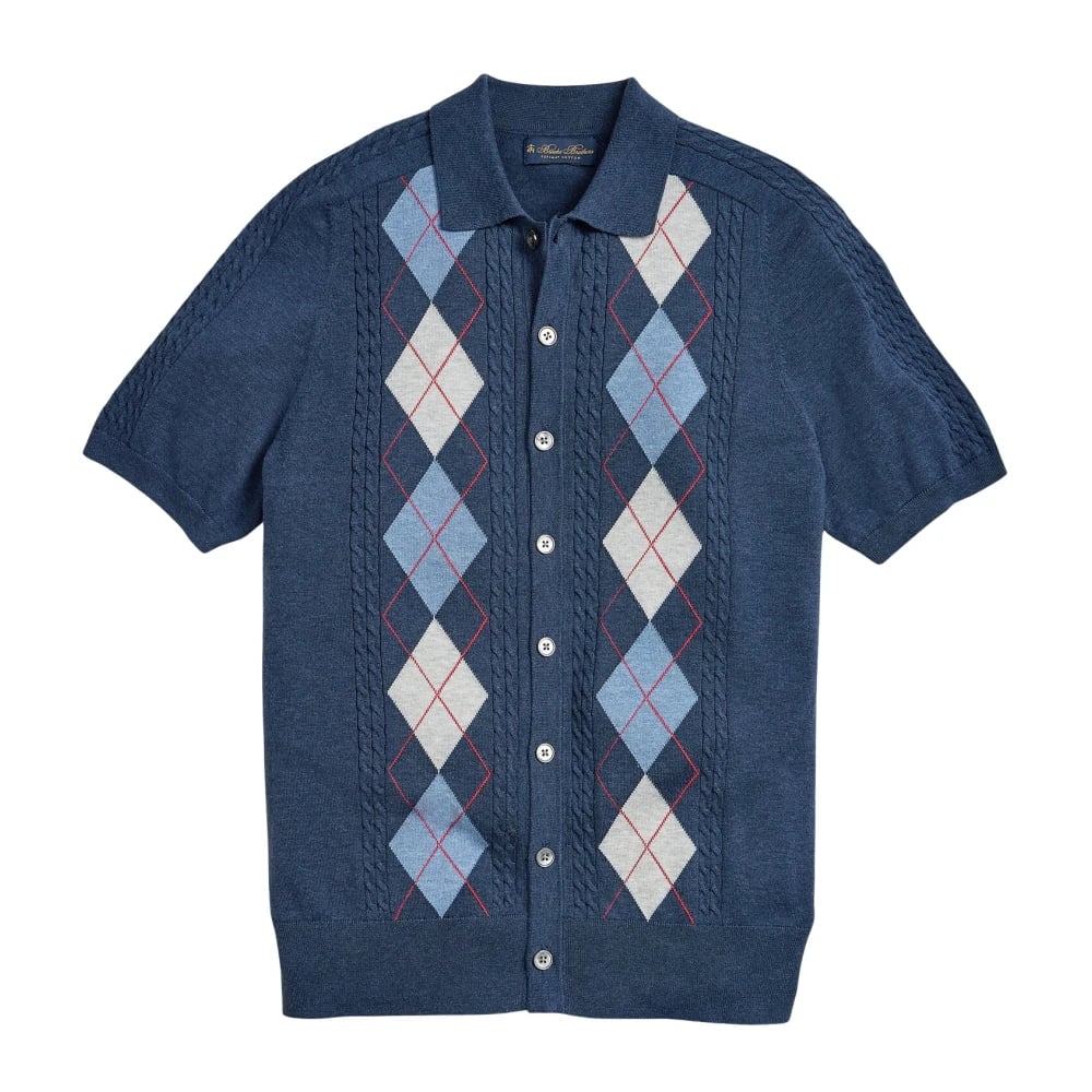 Brooks Brothers, Stickade Tröjor , Herr, S, Bomull, Jersey Intarsia Argyle Polo Cardigan