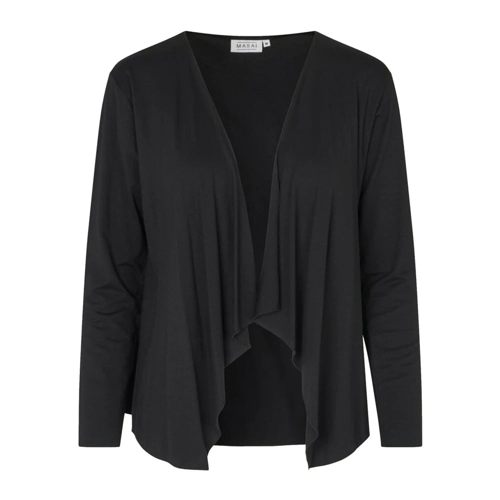 Masai, Stickade Tröjor , Dam, M, Öppen-front Cardigan i Svart Jersey