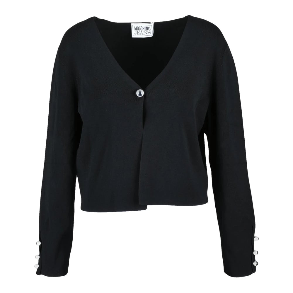 Moschino, Stickade Tröjor , Dam, M, Polyester, Short Jersey Cardigan