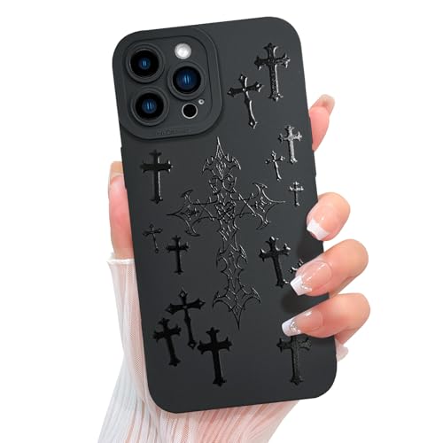 KANGHAR för iPhone 14 Pro Max-fodral estetiskt välsignat kors Jesus kristen gotisk designat för kvinnor flickor män, fullständigt kameraskydd smal passform mjuk TPU stöttåligt skyddande fodral – svart