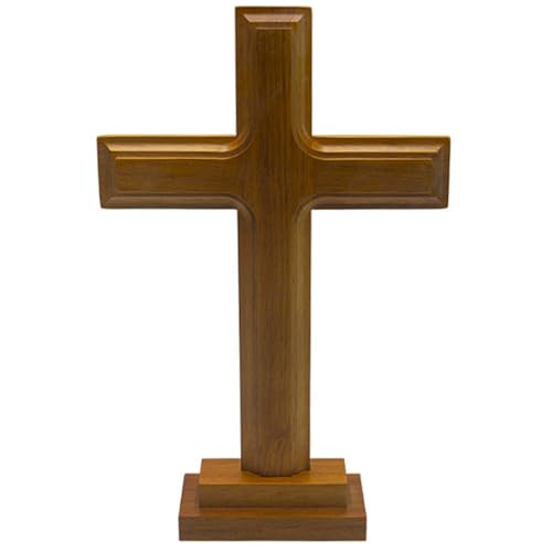 Hbbgdiy 18 x 28 cm stående träkors, minimalistiskt brunt Jesus kors med bas, religiös kristen dekor för hem, kapell och kyrka
