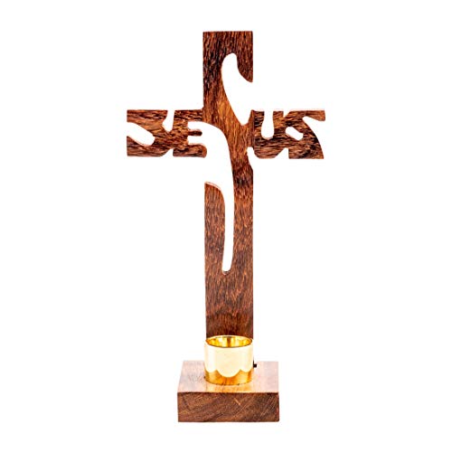 Hashcart katolskt krusifix kors med ljusstativ, Jesus dekor (15 cm) Jesus Kristus staty och figur för bordsdekoration, katolsk dekor, heminredning heminredning kontor dekor