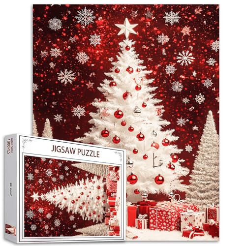 Julgran 1 000 Stycken Jigsaw Pussel för Vuxna - Snöflingor, Vinter Snölandskap, Utmanande Familj Aktivitet Spel, Färgglada Gör-Det-Själv Hantverk för Heminredning