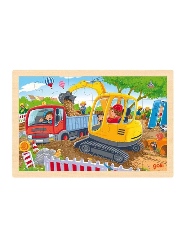 Goki Wooden Jigsaw Puzzle Construction Site 24 pc Trä