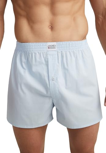 Jockey Boxer vävda – bomulls-boxershorts för män i 3-pack, kalsonger med gylf och knapp, ventilerande underkläder för män, mjuk komfortlinning, set om 3, Skjorta blå, L