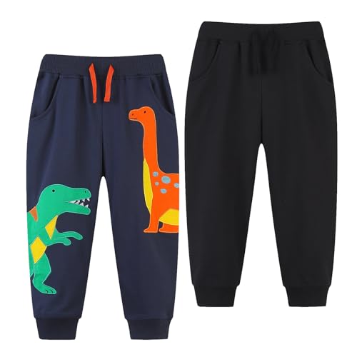 Codkkre 2-pack pojkar joggingbyxor med elastisk midja, barn, joggingbyxor, dinosaurierbyxor för pojkar, sweatbyxor, barn, bomull, sportbyxor, joggingbyxor, barnbyxor, 92 98 104 110 116 122, Dinosaurie