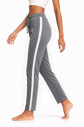 Aseniza Dam joggingbyxor bomull sweatpants sportbyxor långa fritidsbyxor hög midja löparbyxor träningsbyxor med ränder, Mörkgrå, L