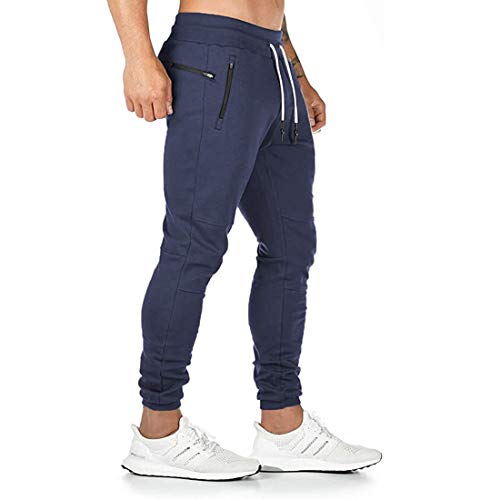 Tansozer Joggingbyxor Herr Träningsbyxor Sportbyxor Herr Gymjoggingbyxor Fritidsbyxor Fitnessbyxor med Blixtlåsfickor Löparbyxor för Män Slim Fit Långa Sport Joggare Sweatpants Blå L