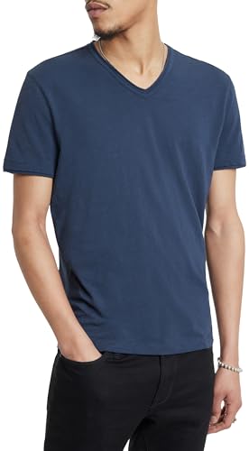 John Varvatos Star USA Kortärmad Slub V-ringad V-ringad med skuren rå kant T-shirt, Oljad blå, L