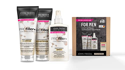 John Frieda Profiller + fördel-set – perfekt för fint manshår – innehåll: schampo, 250 ml balsam, uppfriskande spray, 150 ml – ger håret aktiva ingredienser