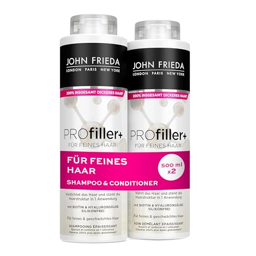 John Frieda PROfiller+ Set – schampo, 250 ml & balsam, 250 ml – hårtyp: fin – komprimerar och ger näring åt håret – med biotin och hyaluronsyra