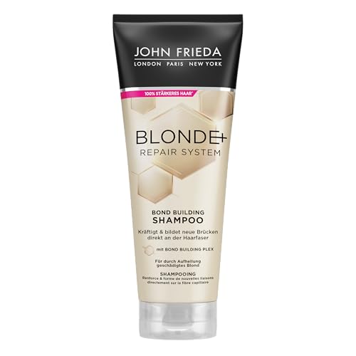 John Frieda Blonde Repair System Shampoo – Bond Building – Innehåll: 250 ml – För hår skadat av blekning – Med Bond Building Plex