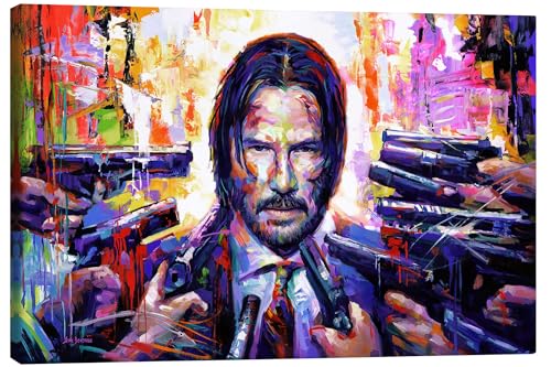 John Wick Pop Art Canvastavla av Leon Devenice 100 x 70 cm Färgstarkt Tavlor Väggdekoration