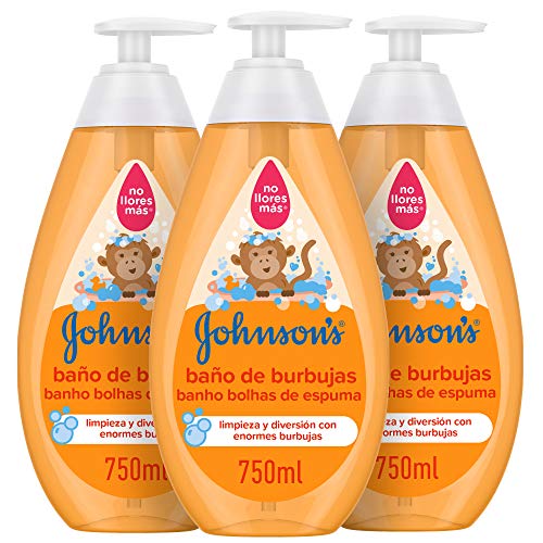 Johnson's Baby Bubbelbad (3 x 750 ml), babybadgel med formel Gråt Inte mer, för den ömtåliga huden hos nyfödda barn, skapar enorma bubblor
