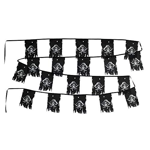 Flaglink Dead Man's bröstflagga uppsättning med 20 flaggor – längd 30 fot – dödskalleben Jolly Roger tvärben läskig trasig piratflagga sträng