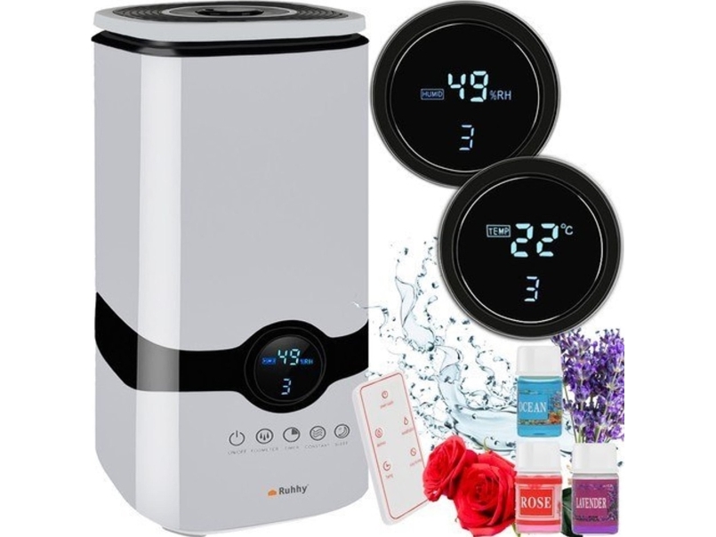 Ruhhy Luftfuktare Ultraljudsluftfuktare 4L Med Aromaterapi Och Jonisering + 3 Oljor