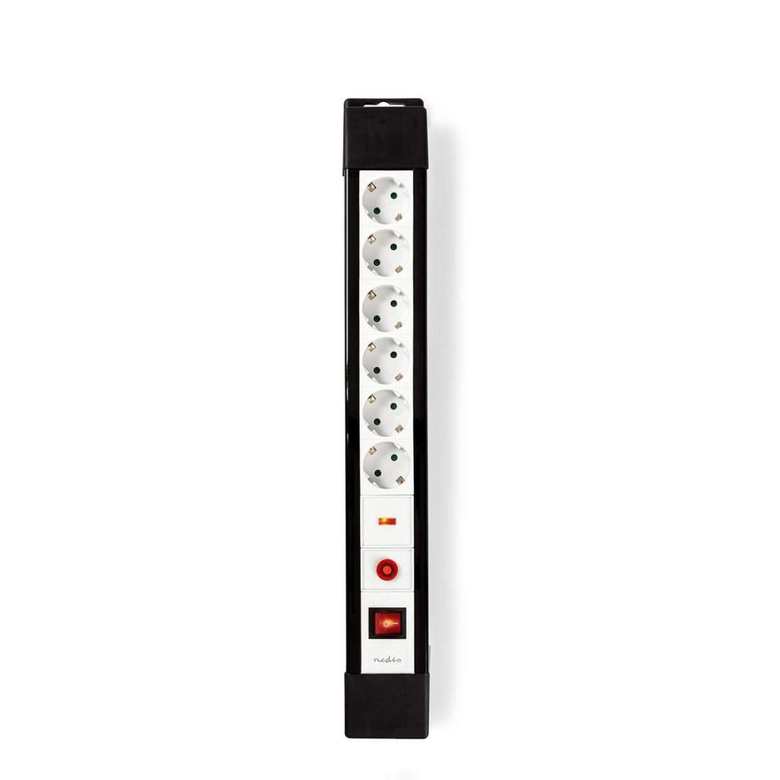 Nedis Grenuttag med överspänningsskydd | 6-vägs | Jordad kontakt / Typ F (CEE 7/7) | 3.00 m | 3500 W | 16 A | Typ av jordning: Sidkontakt | Uttagsvinkel: 45 ° | H05VV-F 3G1.5mm² | På / av-knapp | Svart / Vit