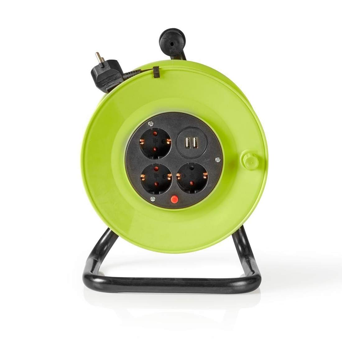 Nedis Kabel rulle | Jordad kontakt | 10.0 m | 3000 W | 16 A | Typ av jordning: Sidkontakt | 230 V AC 50/60 Hz | Uttagsvinkel: 90 ° | H05VV-F 3G1.5mm² | Säkring: Ja | Grön / Svart
