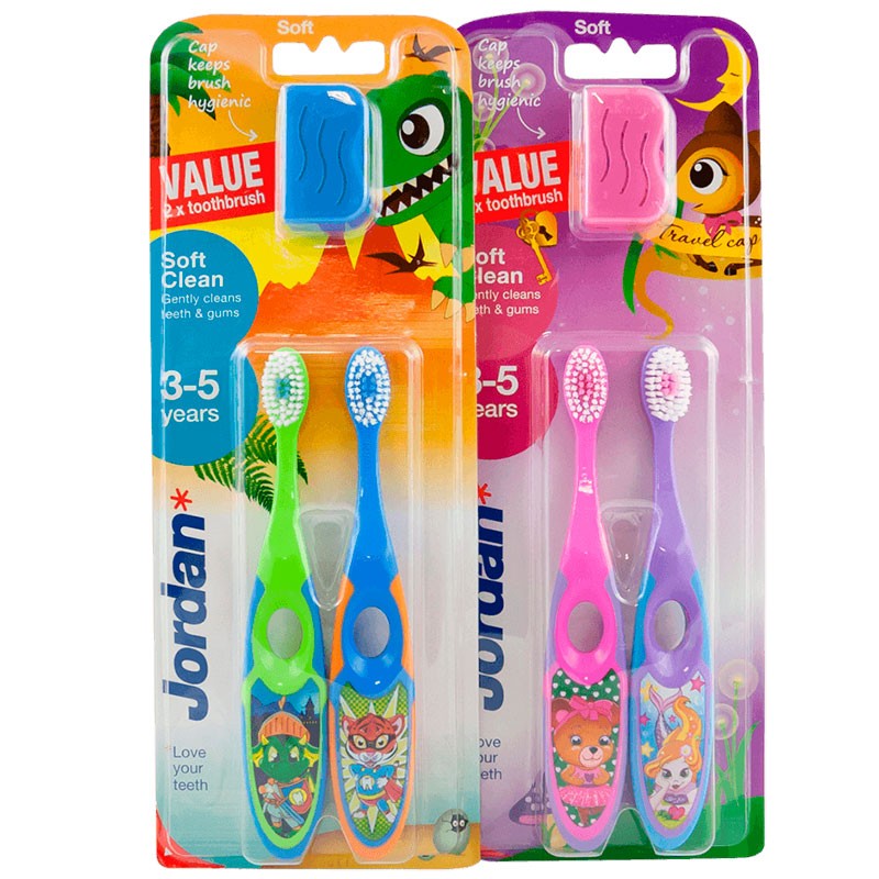 2 st. Jordan Soft Clean Barntandborstar - 3-5 år FLICKA