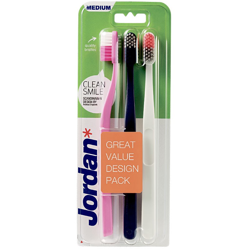 3 bitar. Jordan Clean Smile tandborstar - medium