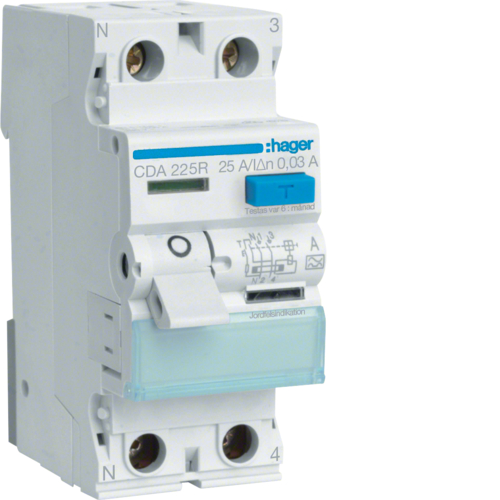 HAGER Jordfelsbrytare 2-P 25A 30mA