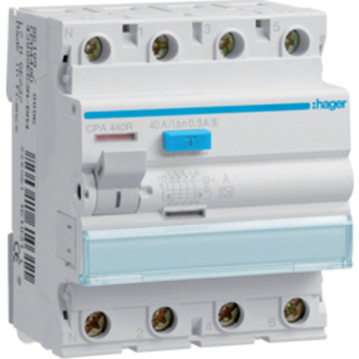 Hager CPA440R Jordfelsbrytare 4-polig, 300mA 40A
