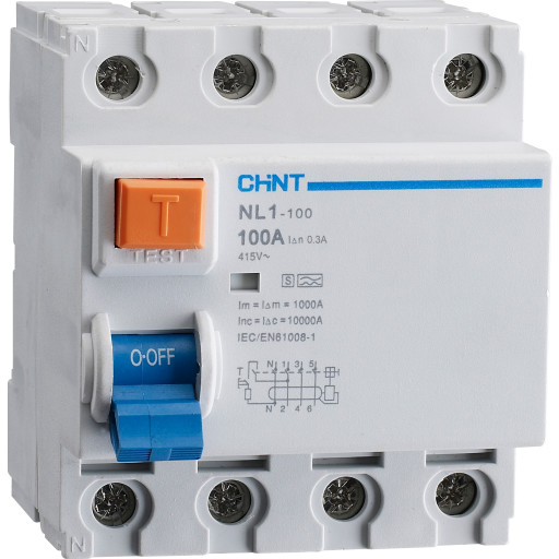 Jordfelsbrytare RCCB/RCD 4P 100A 300mA, tidsfördröjning, typ A, S-typ, N vänster