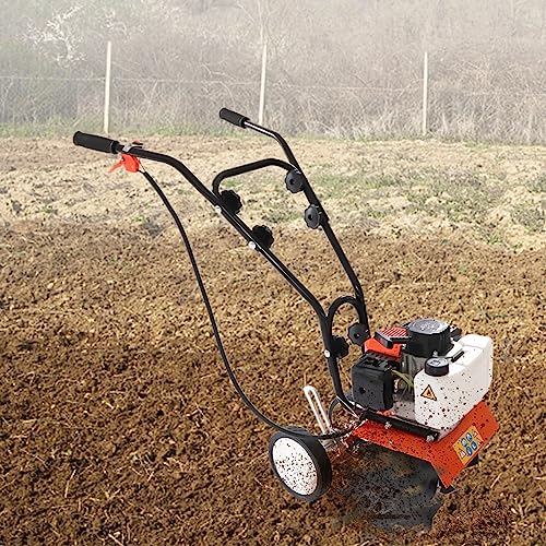 Bensin motorhacka trädgårdsfräs 2-takts 43 CC motorhacka bensin trädgårdfräs hjuldrift jordfräs jordfräs 25 cm/upplåsningsbredd, justerbart bearbetningsdjup 5–10 cm