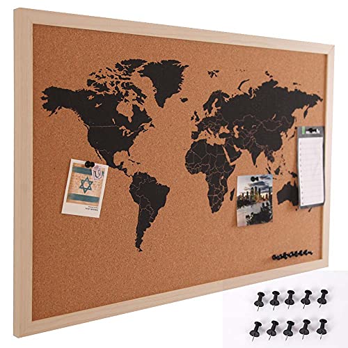 Bakaji Panelpanel Jordglob Cork Geografisk Karta över Världskarta Träram med ram Storlek 60x40cm Vägg Modern Design med 10 Picks Present