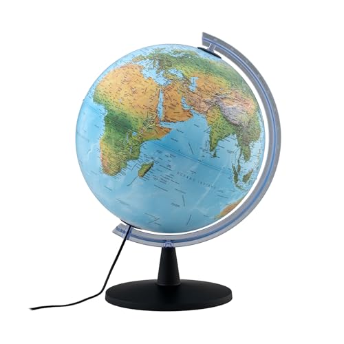 Tecnodidattica - GIGAGLOBO 40 | Självlysande och roterande jordglob | Fysisk och politisk kartografi | Italienska texter | Stor storlek | Diameter 40 cm