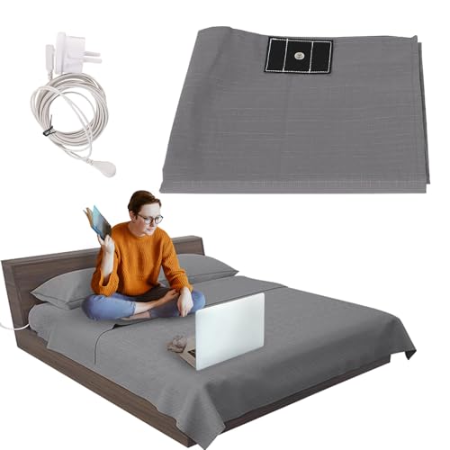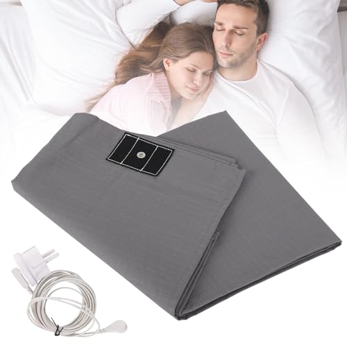 GHIBFBT Jordningslakan, jordbundna sängkläder, ledande jordningsspänningslakan med EU jordkabel och jordningskontakt, 10 % silvertrådar andel (99 x 203 cm)