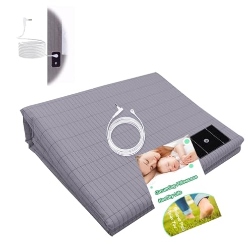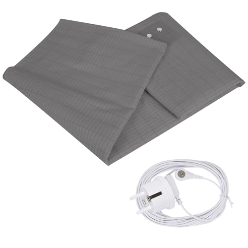 Jordningsdra-på-lakan, dra-på-lakan med silverfiber, ledande jordningslakan med EU jordkabel (1 st grå jordning örngott, 51 x 92 cm/20 tum x 36 tum)