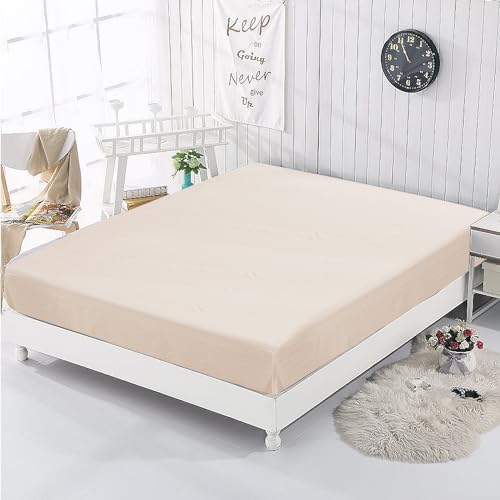 Jordningslakan med EU jordkabel, 90 % ekologisk bomull och 10 % silverfiber, ventilerande jordningslakan för bättre sömn, grounding Fitted Sheet Earthing matta, beige (68 x 132 cm)