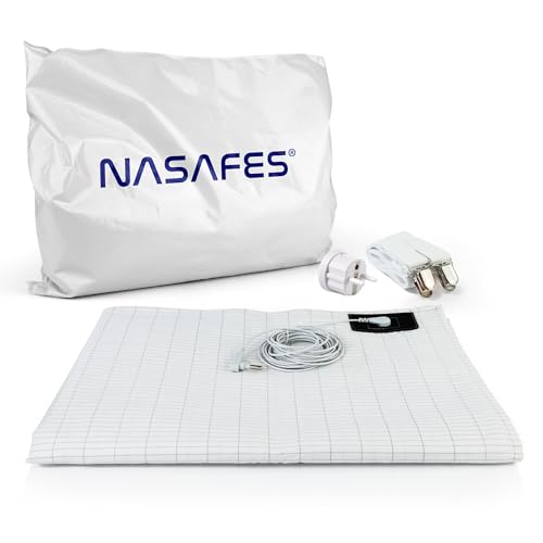 Nasafes Jordningslakan sängset - stor 240 x 90 cm - jordlakan - jordningssäng - bomullslakan med silvertrådar och 2 lakansklämmor och EU-adapter för uttag