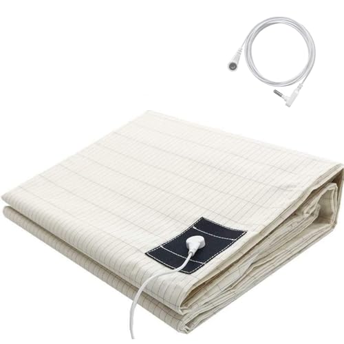 Jordningslakan ledande jordningsmatta med EU jordkabel jordningsprodukt, för säng jordning lakan, andningsaktiv terapi sovmatta, jordningsblad för bättre sömn (68 x 132 cm)