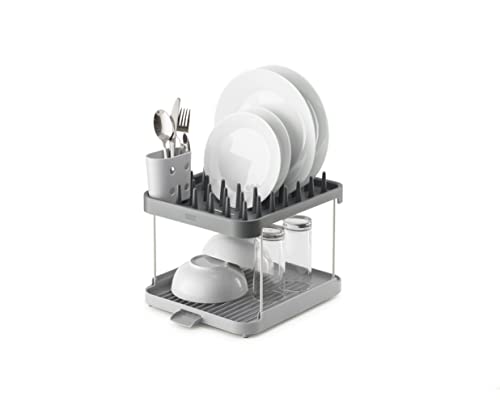 Joseph Joseph Duo 2 nivåer torkställning, diskho med avrinningspip och uppsamlingskärl för köksredskap, grå