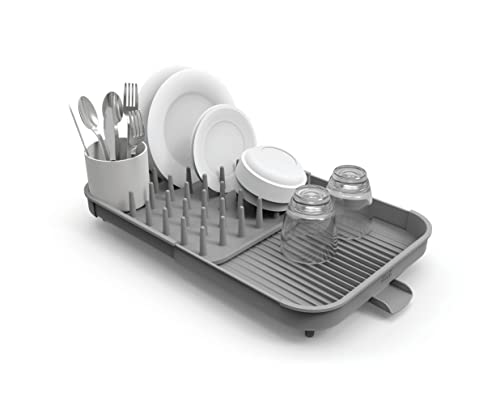 Joseph Joseph Duo Expanderbart diskställ med avtagbar bestickhållare, roterande dränering, rostfritt stål/Grå